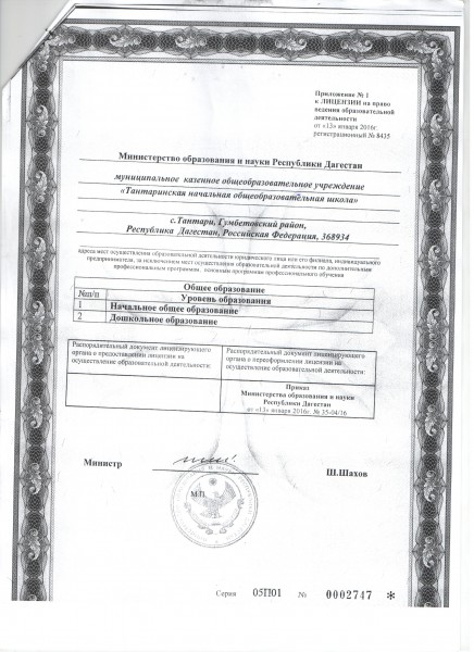 Адрес местонахождения образовательной организации* 368934, РД, Гумбетовский район, с. Тантари